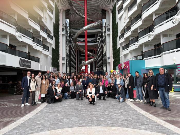 Τουριστικοί πράκτορες ξεναγούνται στο κρουαζιερόπλοιο MSC World Europa, μετά την παρουσίαση του ΕΟΤ Ιταλίας στο λιμάνι Τσιβιταβέκια της Ρώμης