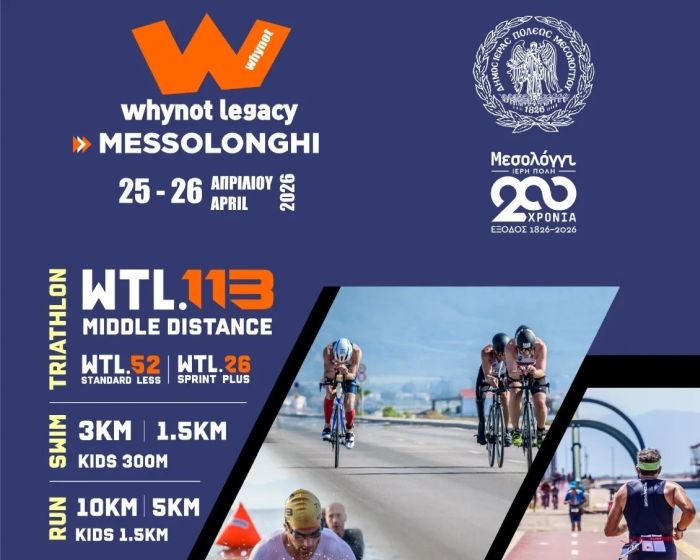 Το «Whynot Messolonghi Legacy 2026» διοργανώνεται από το Δήμο της Ιεράς Πόλης Μεσολογγίου, στο πλαίσιο των εκδηλώσεων για την επέτειο των 200 ετών από την Έξοδο (1826-2026), και περιλαμβάνει δύο αθλητικές ενότητες: το Σάββατο 25 Απριλίου κολυμβητικούς αγώνες στην παραλία της Τουρλίδας, μήκους 1,5 χλμ., 3 χλμ. και 300 μ. (για παιδιά), και δρομικούς αγώνες γύρω από τη λιμνοθάλασσα 5 χλμ., 10 χλμ. και 1,5 χλμ. (για παιδιά), ενώ την Κυριακή 26 Απριλίου αγώνες τριάθλου στις κατηγορίες Middle (Half), Standard και Sprint. Κεντρικός στόχος της διοργάνωσης είναι η ενδυνάμωση της προβολής του Μεσολογγίου στο διεθνές κοινό, αλλά και η ανάδειξή του ως αξιόλογου προορισμού για αθλητικό τουρισμό.
