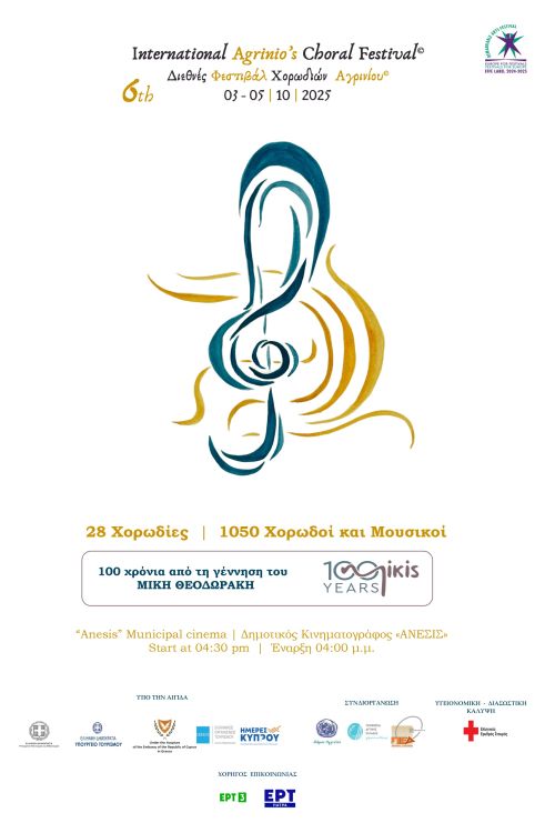 Αύριο Παρασκευή 3 Οκτωβρίου ξεκινά στην πόλη του Αγρινίου το 6ο Διεθνές Φεστιβάλ Χορωδιών, πολυσυλλεκτική διοργάνωση που αποσκοπεί στην παρουσίαση υψηλού επιπέδου χορωδιακής μουσικής. Στο φεστιβάλ θα συμμετάσχουν 28 χορωδίες από την Ελλάδα, την Κύπρο και άλλες ευρωπαϊκές χώρες, με κορυφαίους μαέστρους και 1.050 χορωδούς. Επίτιμη καλεσμένη χορωδία και στο φετινό φεστιβάλ θα είναι η ανδρική «The Gwalia Singers», από τις καλύτερες χορωδίες της Ουαλίας, ενώ με αφορμή τη συμπλήρωση μισού αιώνα από την εισβολή στην Αμμόχωστο και στο πλαίσιο των Ημερών Κύπρου 2025, θα βραβευτεί η Χορωδία του Δήμου Αμμοχώστου. Το φεστιβάλ θα ολοκληρωθεί την προσεχή Κυριακή 5 Οκτωβρίου.